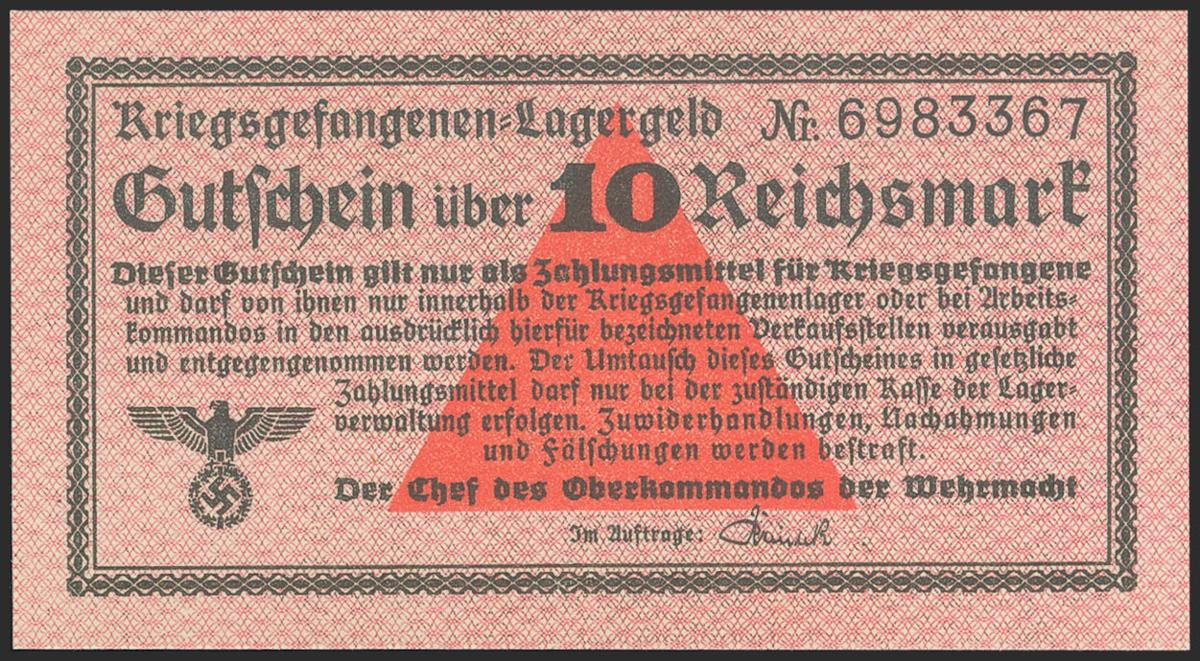 GERMANY (LAGERGELD). 10 Reichsmark. Prisioner of War (POW) currency. World War 2. Uncirculated.