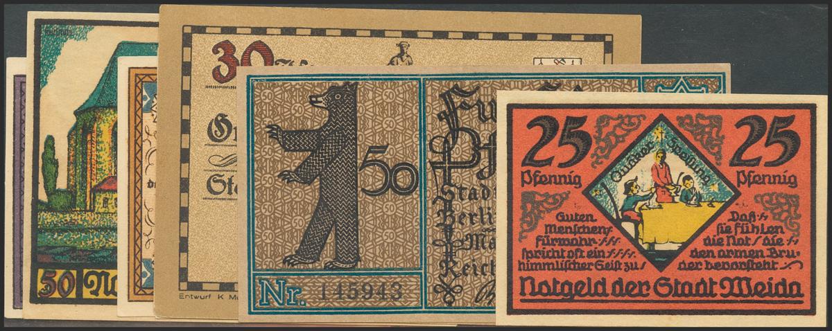 GERMANY (NOTGELD). Set of 7 banknotes, different values and years. About Uncirculated to Uncirculated. TO EXAM.