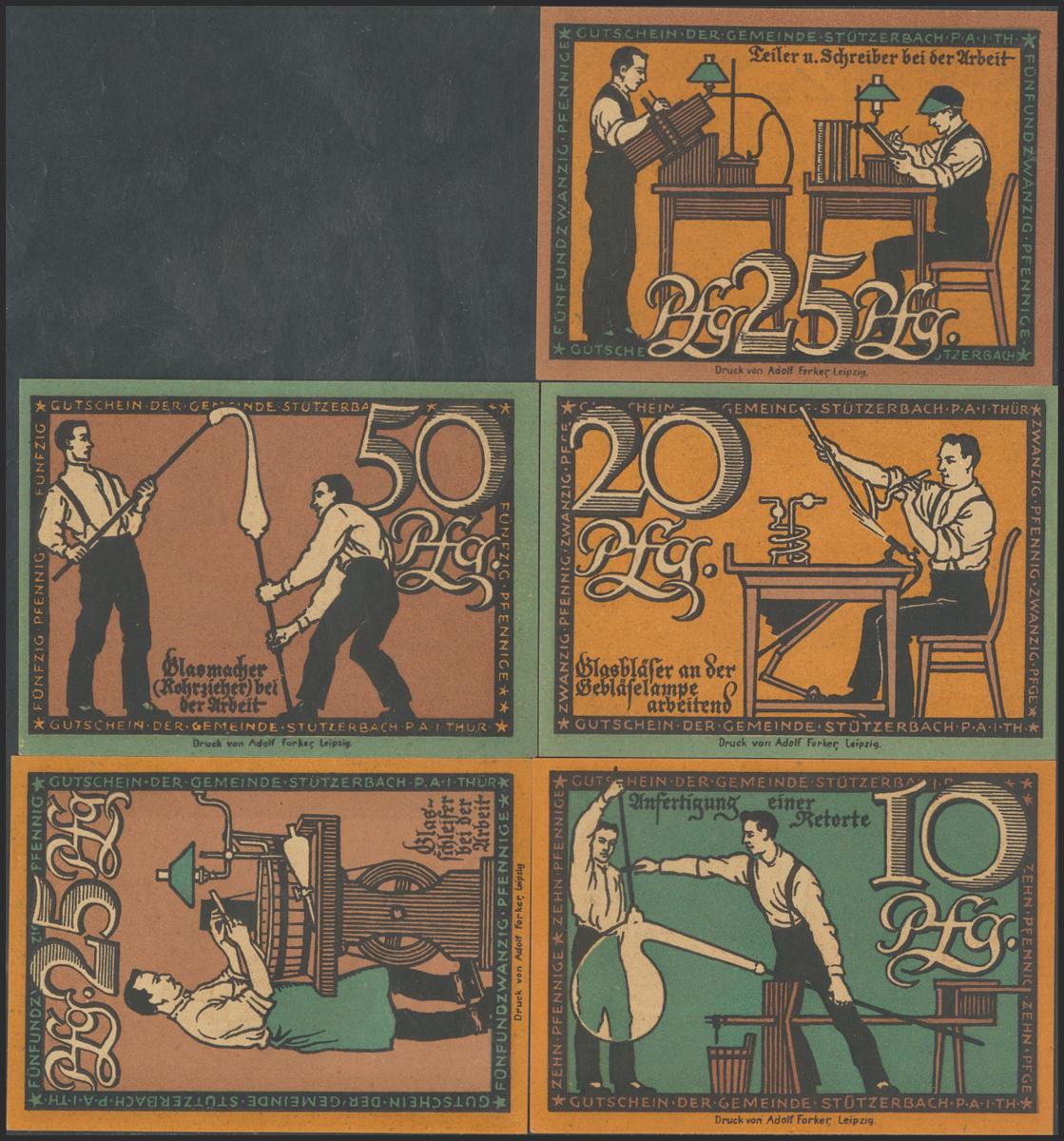 GERMANY. NOTGELD (STÜTZERBACH). Set of 5 banknotes: 10 Pfennig, 20 Pfennig, 25 Pfennig (2), 50 Pfennig from 1931. (Grabowski / Mehl: 1286.1a-1 to 5). Uncirculated.