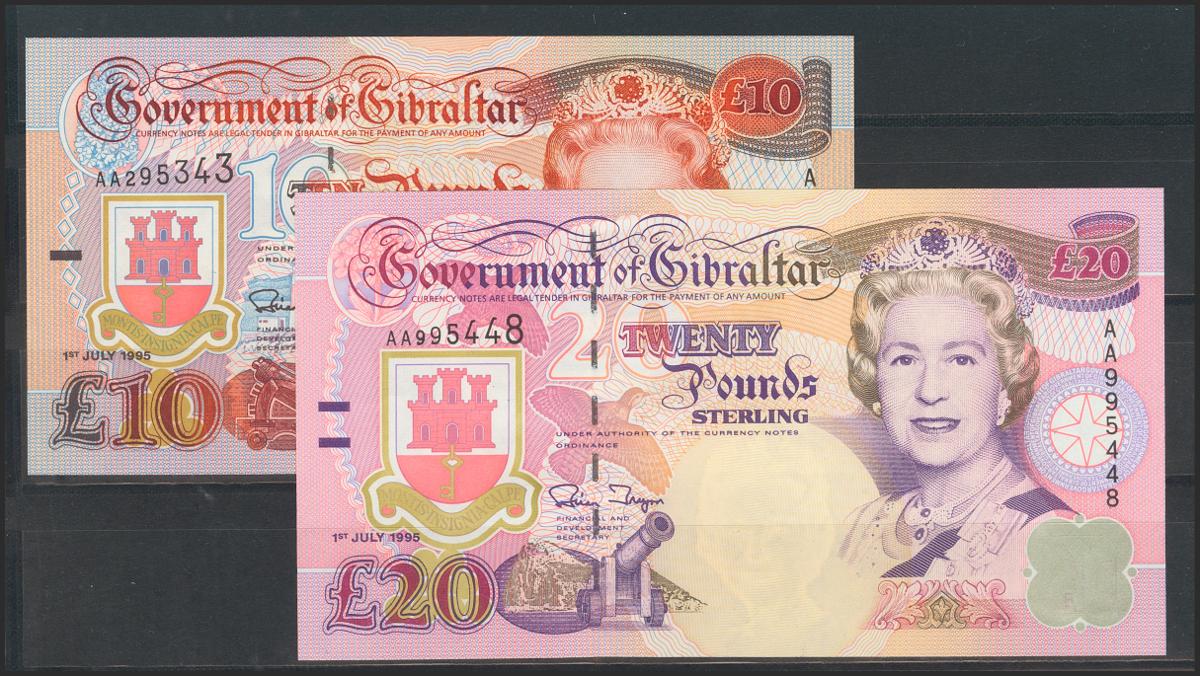 GIBRALTAR. 10 Pounds and 20 Pounds. 1 July 1995. (Pick: 26/27a). Uncirculated.