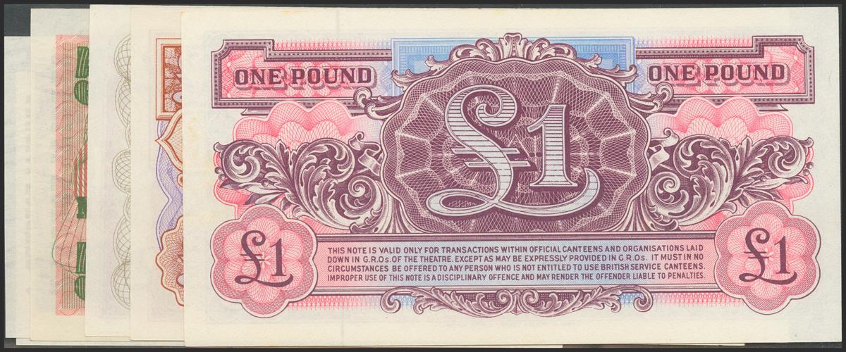 GREAT BRITAIN. Set of 6 banknotes: 5 Pence, 10 Pence, 50 Pence and 1 Pound (3). 1948-1972. MILITARY. (Pick: M22a, M29, M36a, M44a, M45a, M46a). Uncirculated.