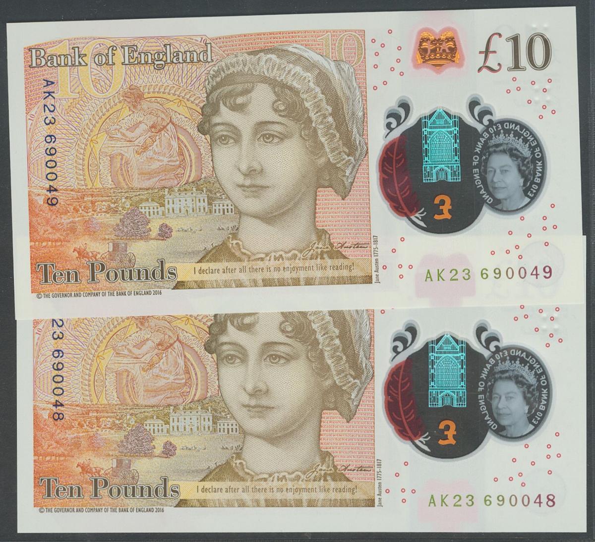 GREAT BRITAIN. 10 Pounds. 2016. Correlative run. AK Series. (Pick: 395a). Uncirculated.