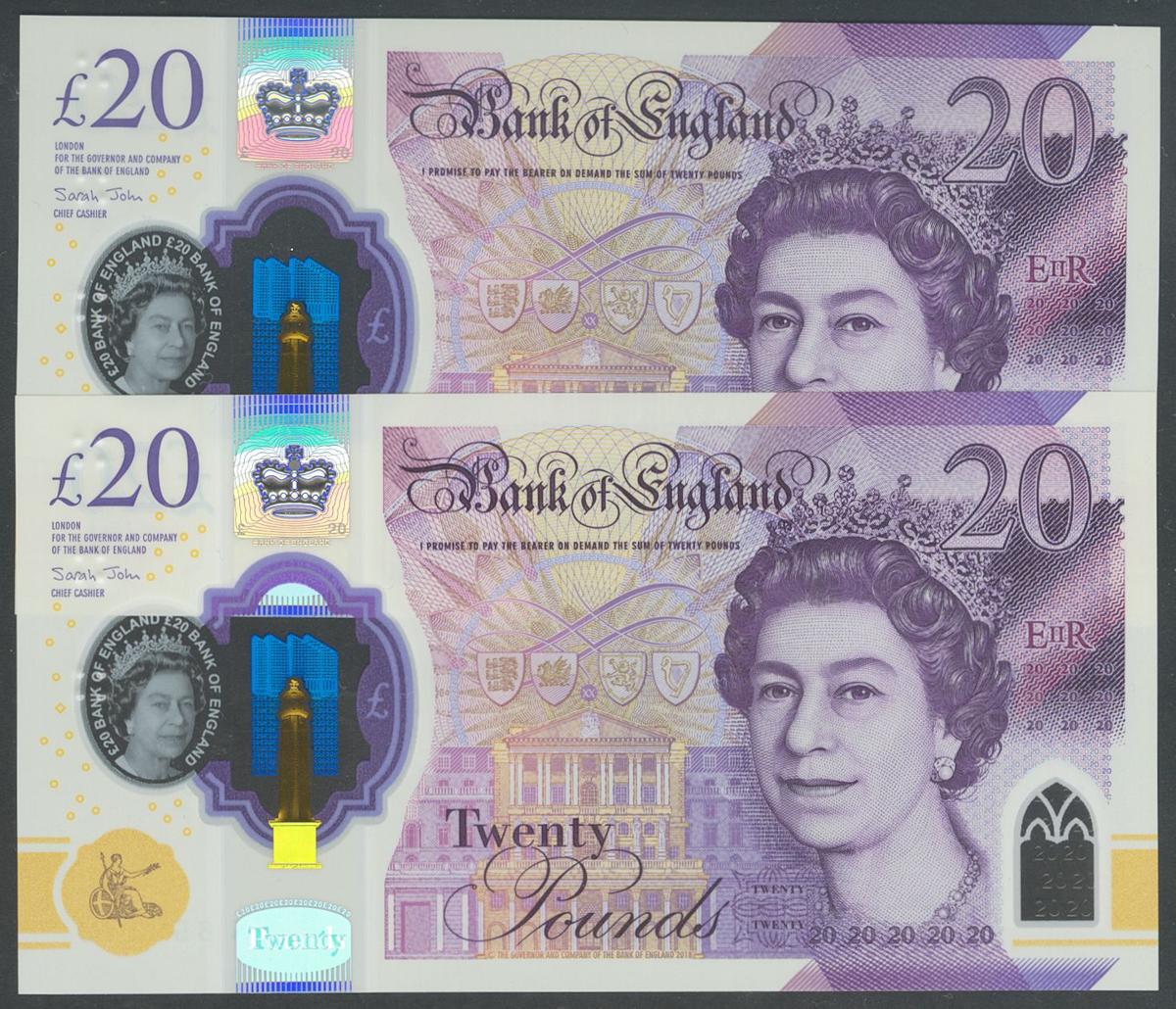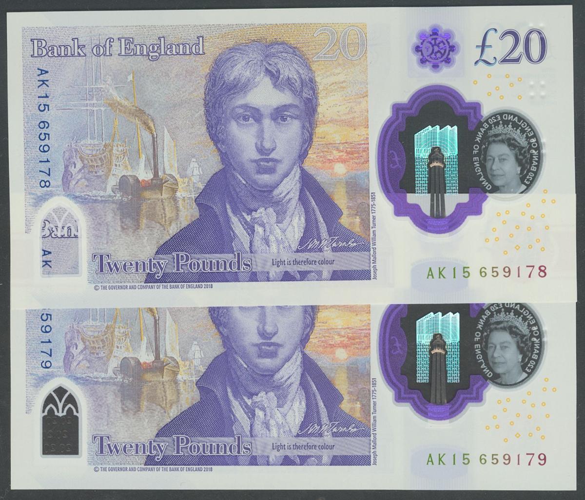GREAT BRITAIN. 20 Pounds. 2018. Correlative run. AK Series. (Pick: 396a). Uncirculated.