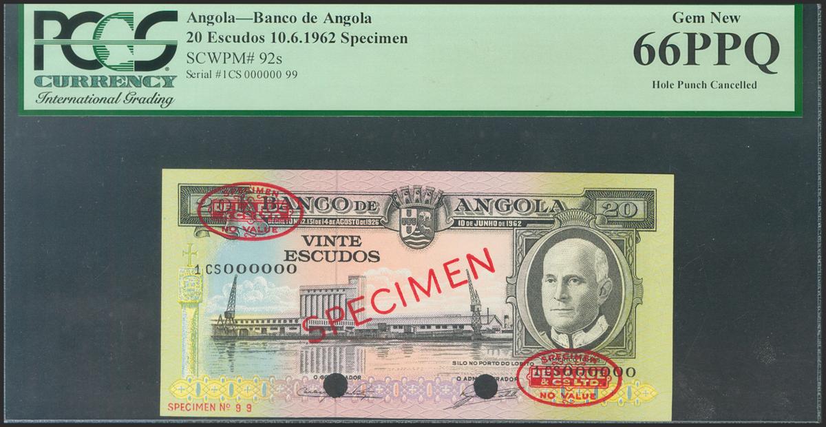 ANGOLA. 20 Escudos. 1962. Specimen. (Pick: 92s). PCGS66PPQ.