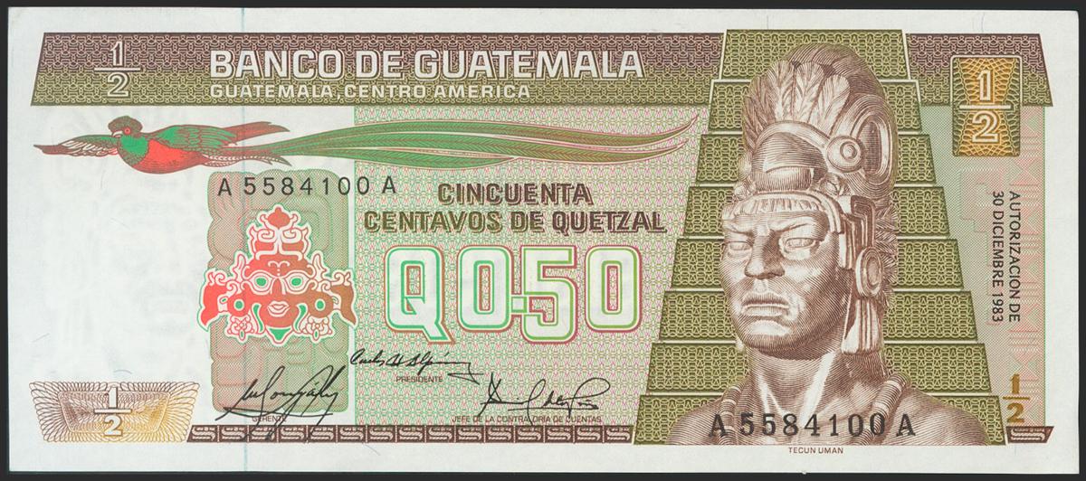 GUATEMALA. 50 Centavos. 1983. A-A Series. (Pick: 65a). About Uncirculated.