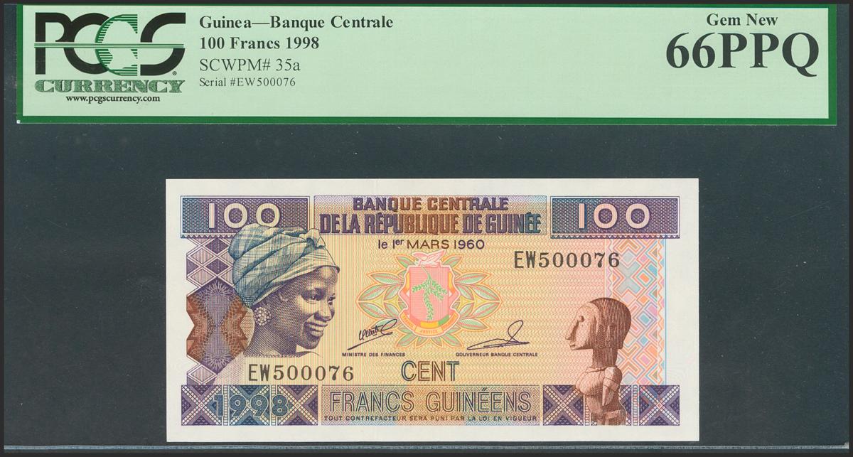 GUINEA. 100 Francs. 1998. (Pick: 35a). PCGS66PPQ.