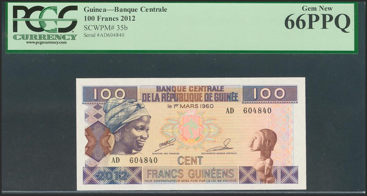GUINEA. 100 Francs. 2012. (Pick: 35b). PCGS66PPQ.