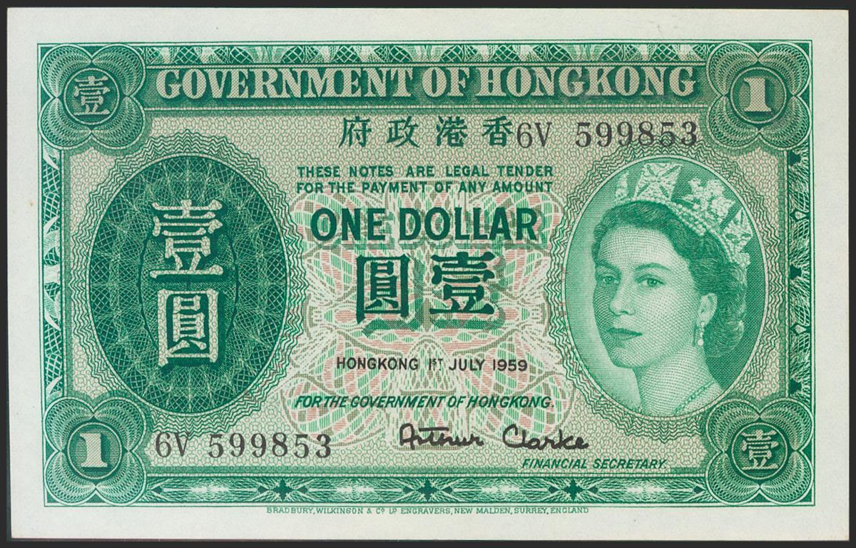 HONG KONG. 1 Dollar. 1959. Government of Hong Kong. Digit and letter serial number. (Pick: 324Ab). Uncirculated.