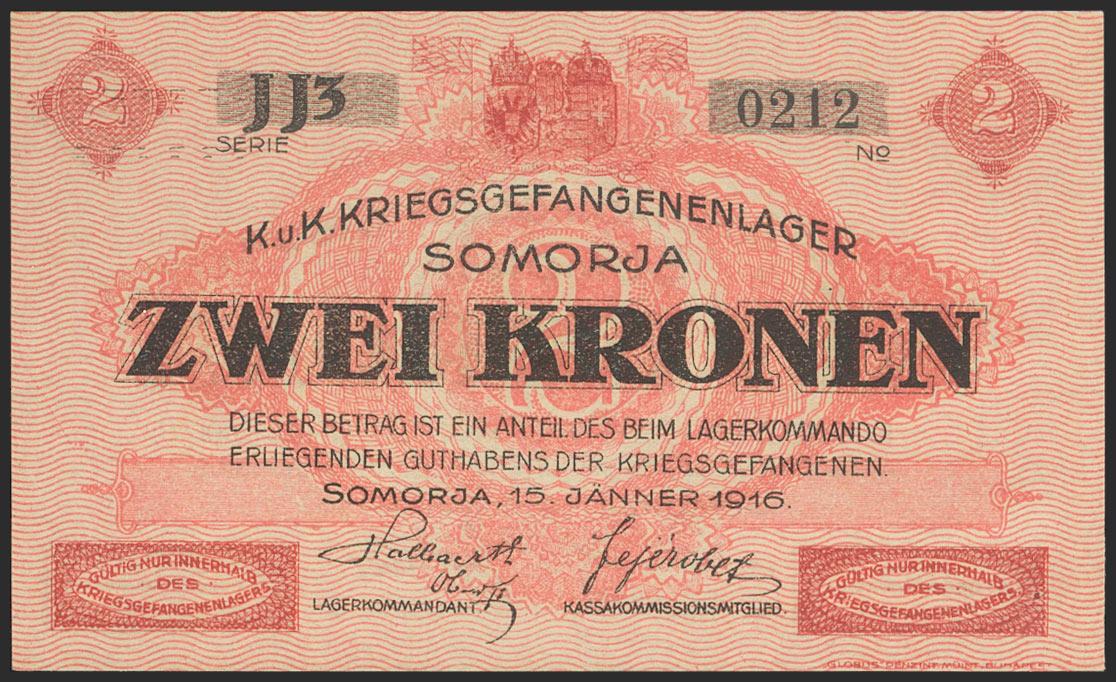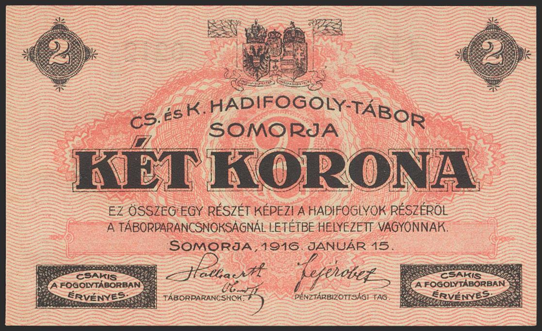 AUSTRIA-HUNGARY (LAGERGELD). 2 Kronen. 1916. Prisioner of War (POW) currency. Somorja camp. World War 1. Uncirculated.