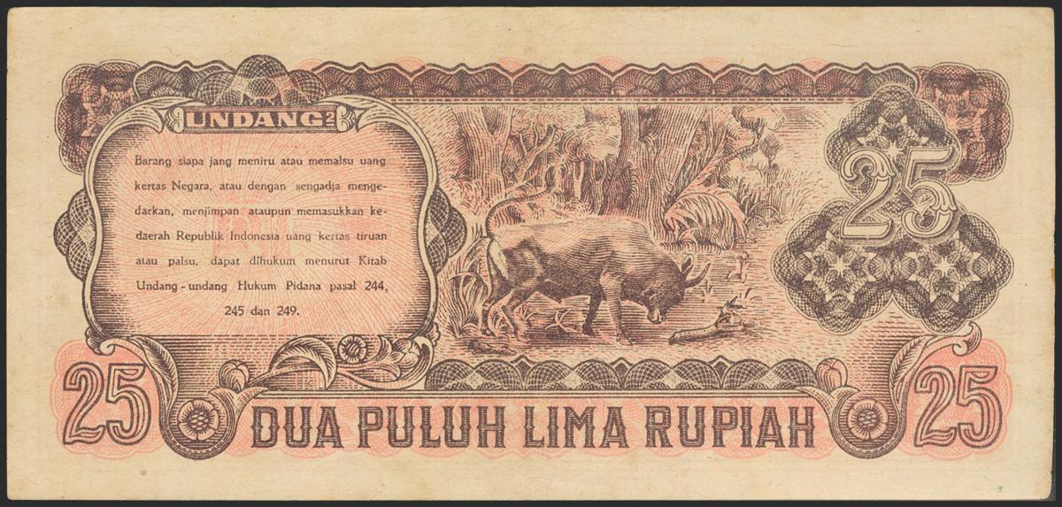 INDONESIA. 25 Rupiah. 1947. (Pick: 27). Middle crease plus some mishandling on corners. About Extremely Fine.