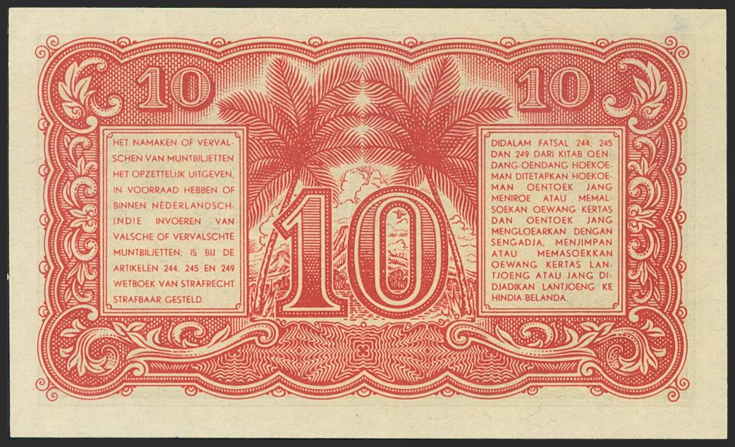 INDONESIA. 10 Sen. 1947. Number written on top margin. (Pick: 31). Uncirculated.