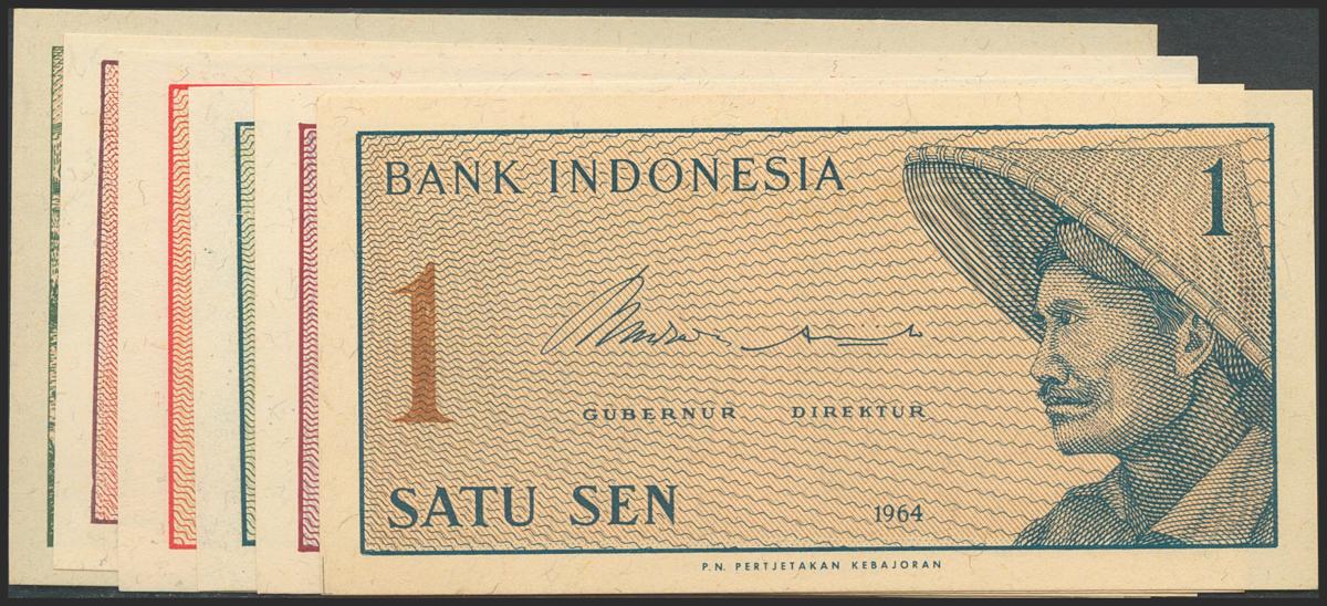 INDONESIA. Set of 4 banknotes: 1 Rupiah, 100 Rupiah (2) and 500 Rupiah. 1956-1996. (Pick: 74,122a, 127a, 128e). Pick 74 has rounded corners. Uncirculated.