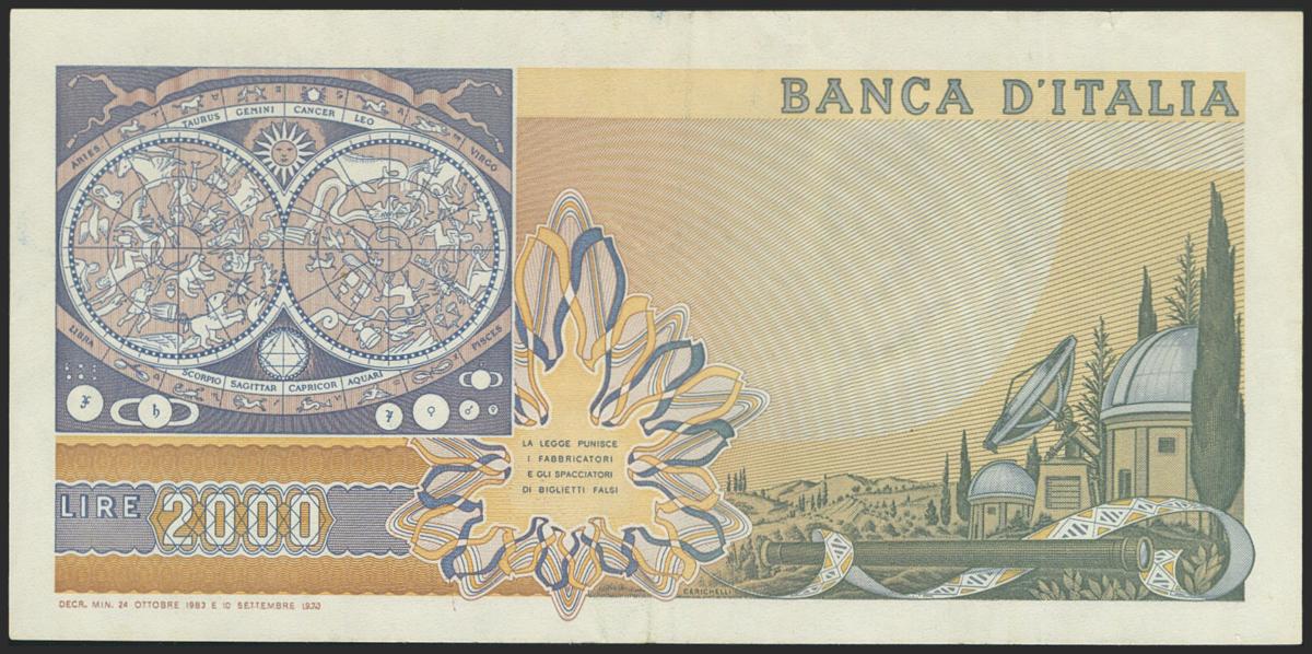 ITALY. 2000 Lire. 1983. (Pick: 103c). Small tear on top edge. Very Fine.