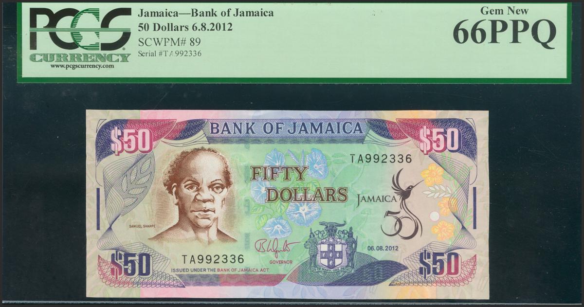 JAMAICA. 50 Dollars. 2012. (Pick: 89). PCGS66PPQ.