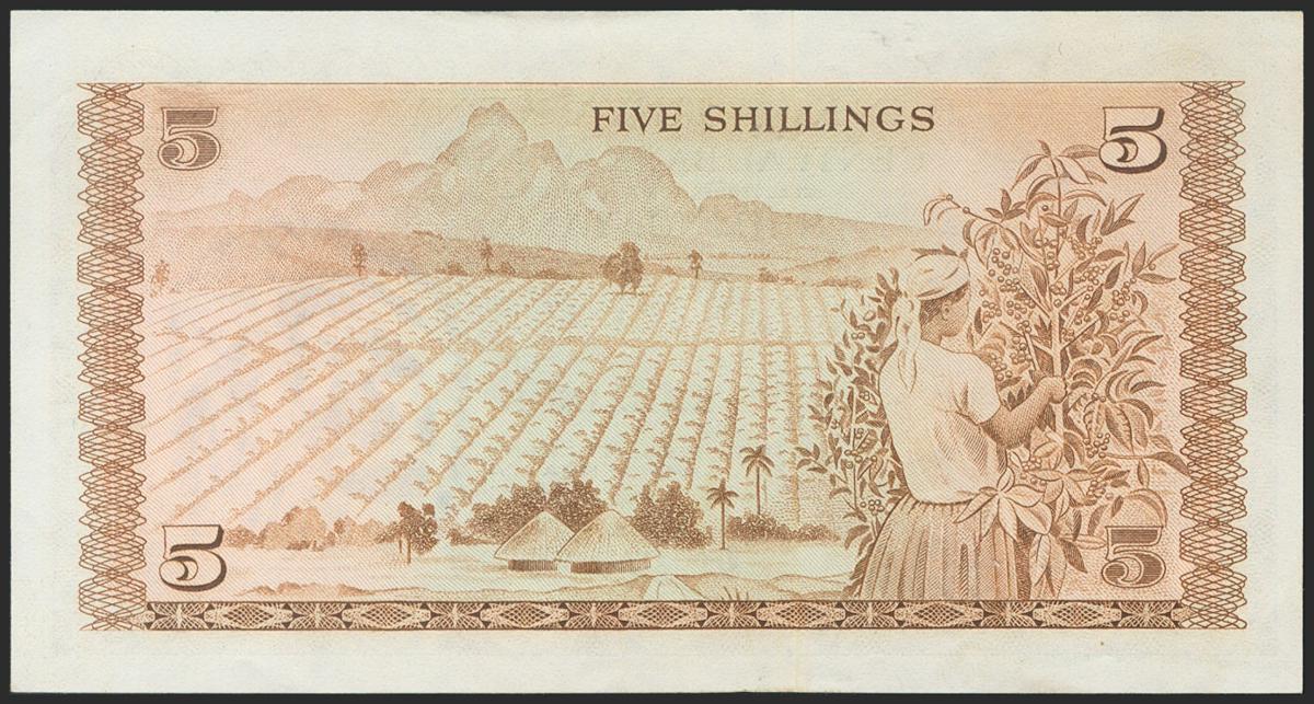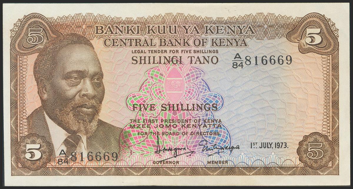 KENYA. 5 Shillings. 1973. (Pick: 6d). Better than Extremely Fine.