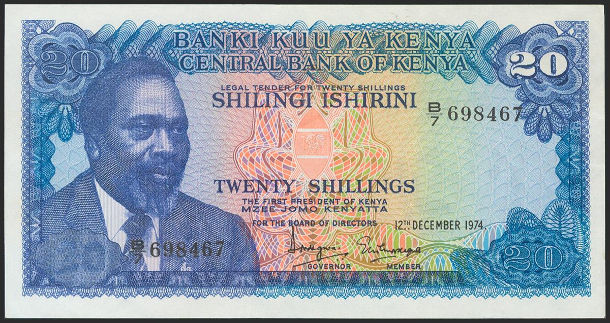 KENYA. 20 Shillings. 1974. (Pick: 13a). Better than Extremely Fine.
