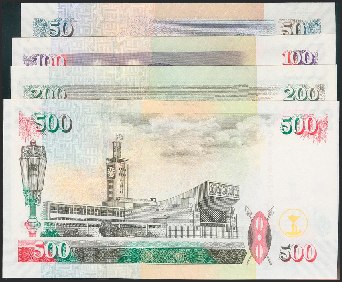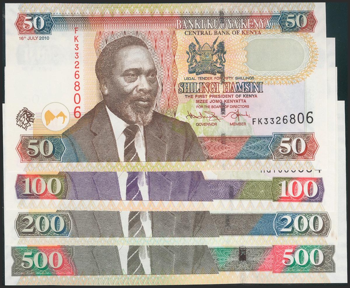 KENYA. Set of 4 banknotes: 50 Shilling, 100 Shilling, 200 Shilling, 500 Shilling. 2010. (Pick: 47e, 48e, 49e, 50e). Uncirculated.