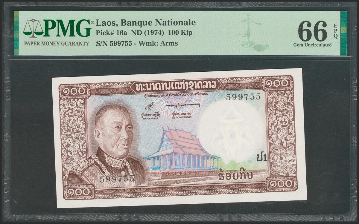 LAO. 100 Kip. 1974. (Pick: 16a). PMG66EPQ.