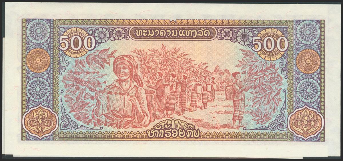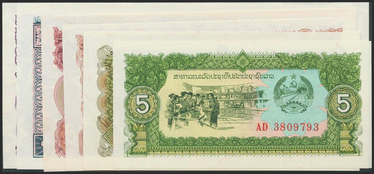 LAO. Set of 6 banknotes: 5 Kip, 10 Kip, 20 Kip, 50 Kip, 100 Kip and 500 Kip. 1979-1988. (Pick: 26a, 27b, 28b, 29b, 30a, 31a). Uncirculated.