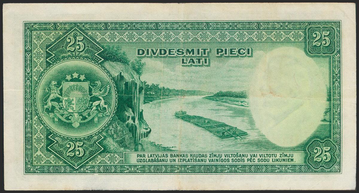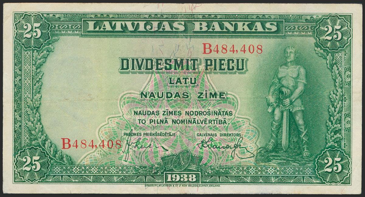 LATVIA. 25 Latu. 1938. (Pick: 21a). Pressed. Very Fine.