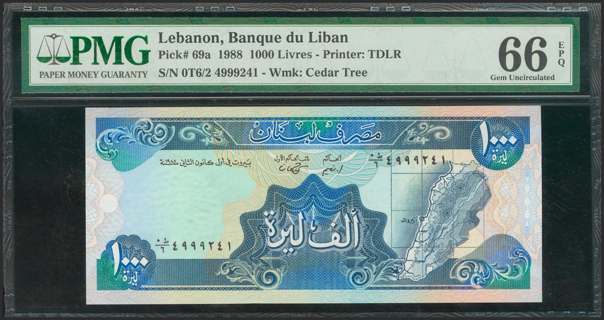 LEBANON. 1000 Pounds. 1988. (Pick: 69a). PMG66EPQ.