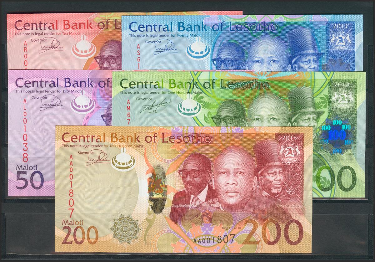 LESOTHO. 10 Maloti, 20 Maloti, 50 Maloti, 100 Maloti and 200 Maloti. (2010ca). (Pick: 21/25). Uncirculated.