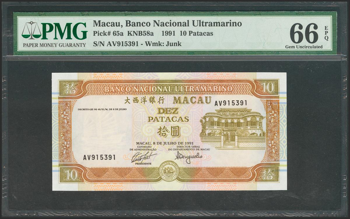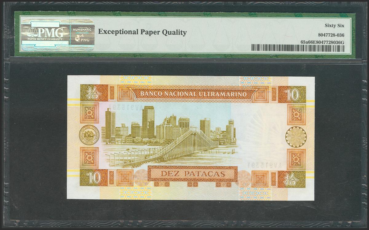 MACAU. 10 Patacas. 1991. (Pick: 65a). PMG66EPQ.