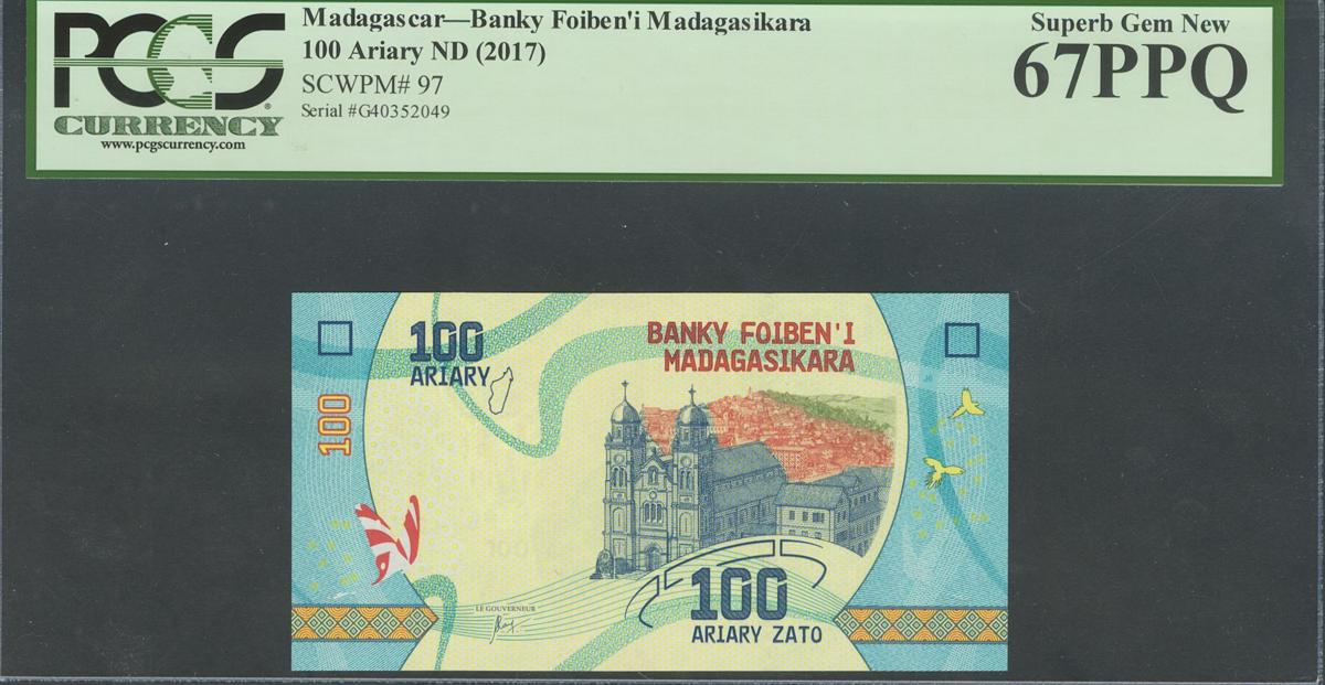 MADAGASCAR. 100 Ariary. 2017. (Pick: 97). PCGS67PPQ.