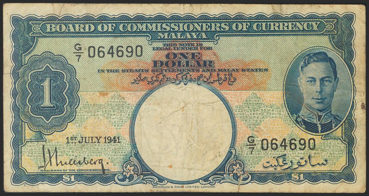 MALAYA. 1 Dollar. 1941. (Pick: 11). About Fine.
