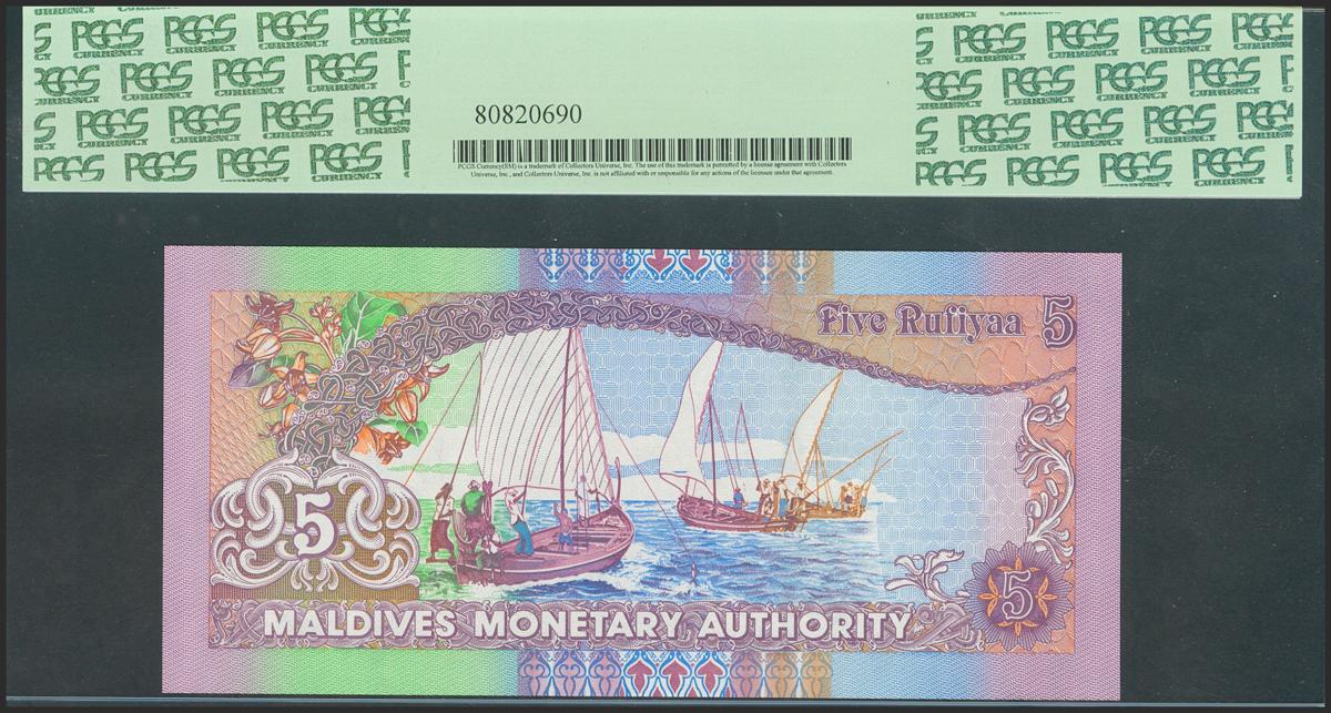 MALDIVES. 5 Rufiyaa. 2011. (Pick: 18e). PCGS68PPQ.