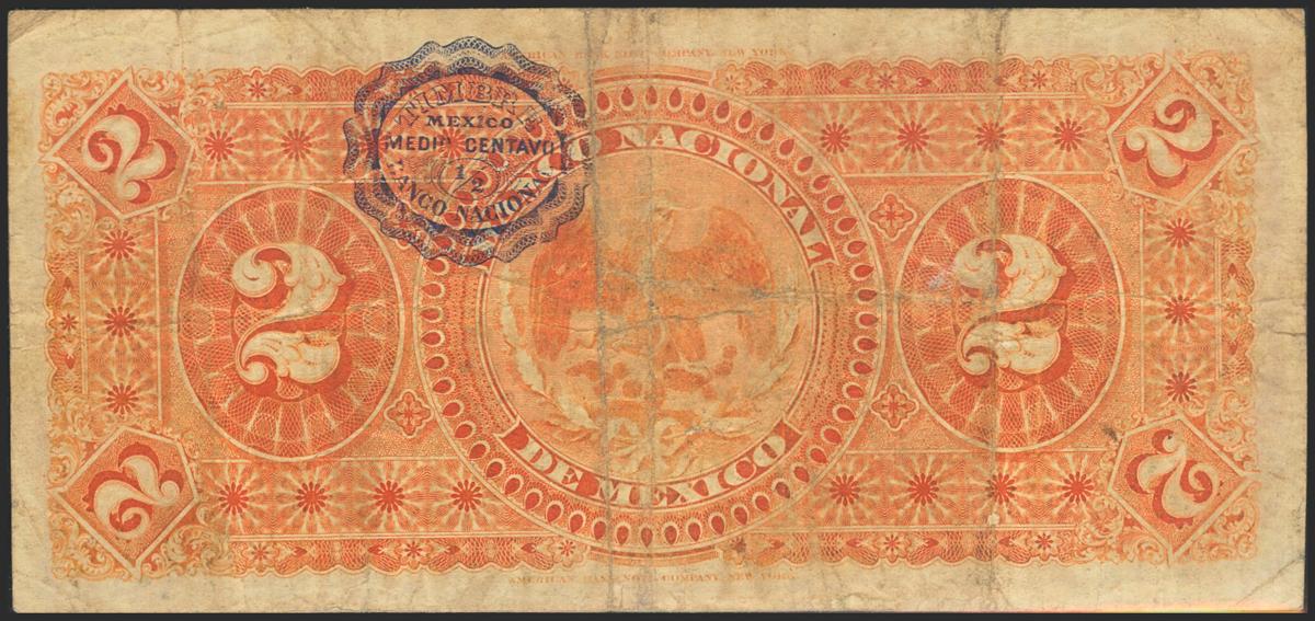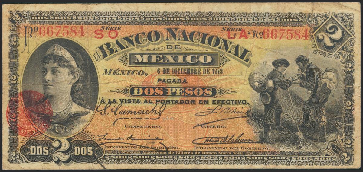 MEXICO. 2 Pesos. 1913. Banco Nacional de Mexico. (Pick: S256a). Better than Fine.