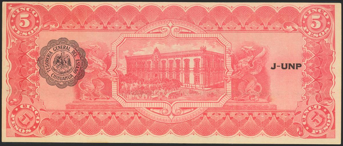 MEXICO. 5 Pesos. 1915. Estado de Chihuahua. (Pick: S532a). About Uncirculated.