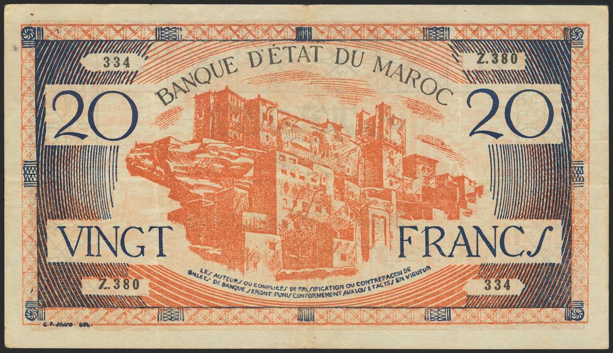 MOROCCO. 20 Francs. 1943. (Pick: 39). Very Fine.