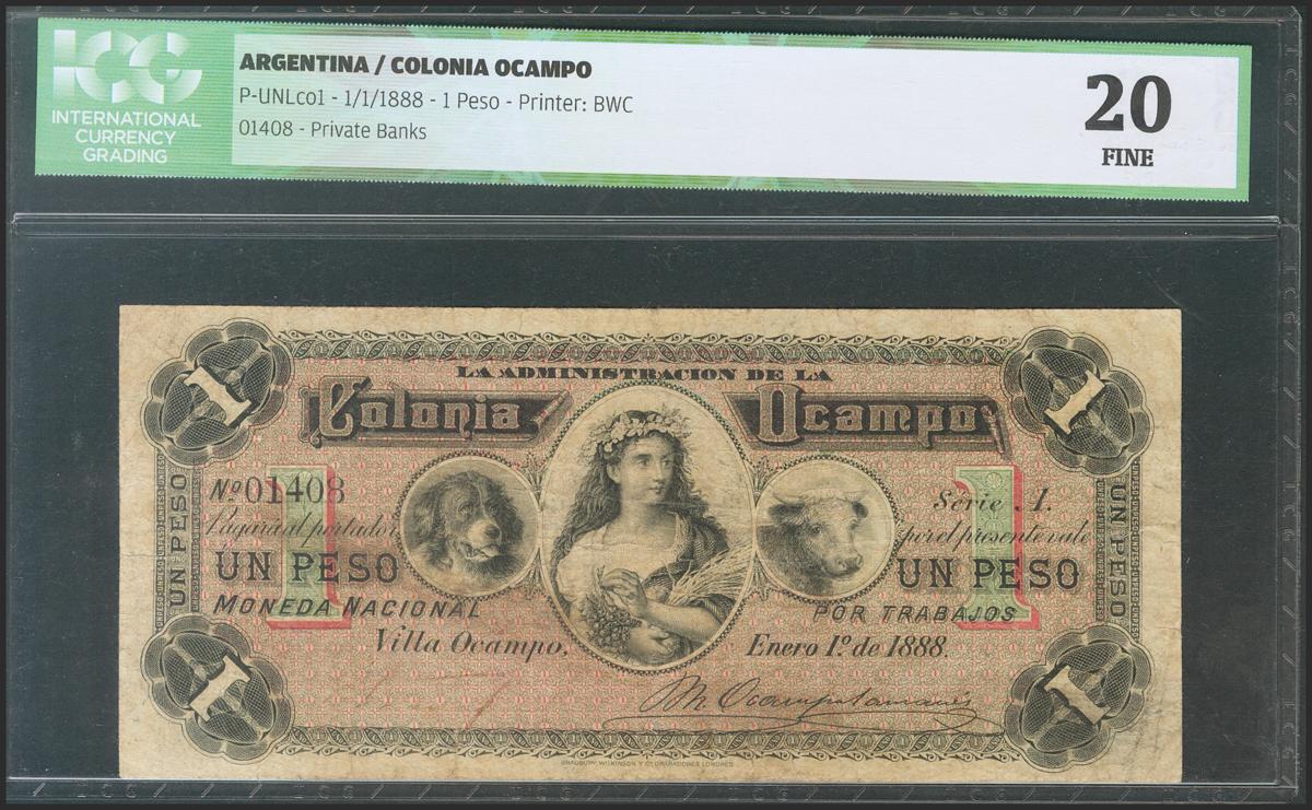 ARGENTINA. 1 Peso. 1 January 1888. (Pick: Unlisted). ICG20.