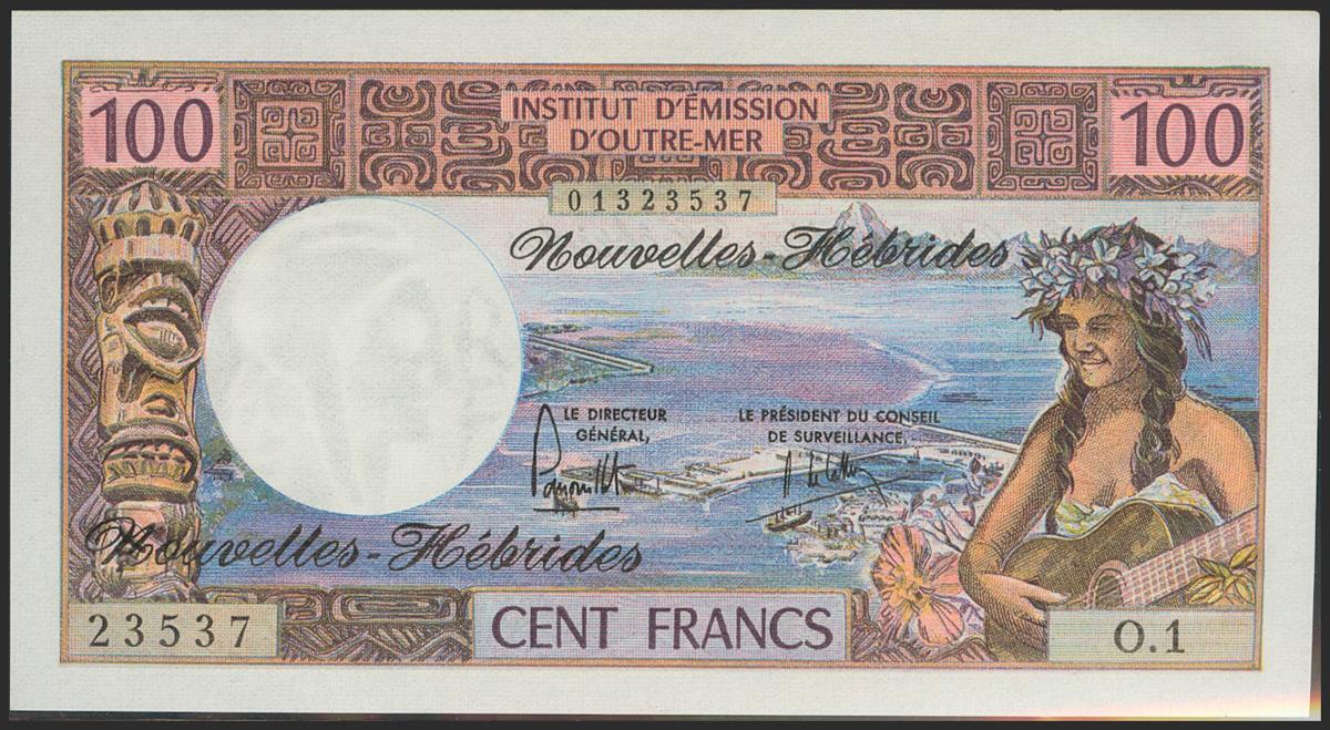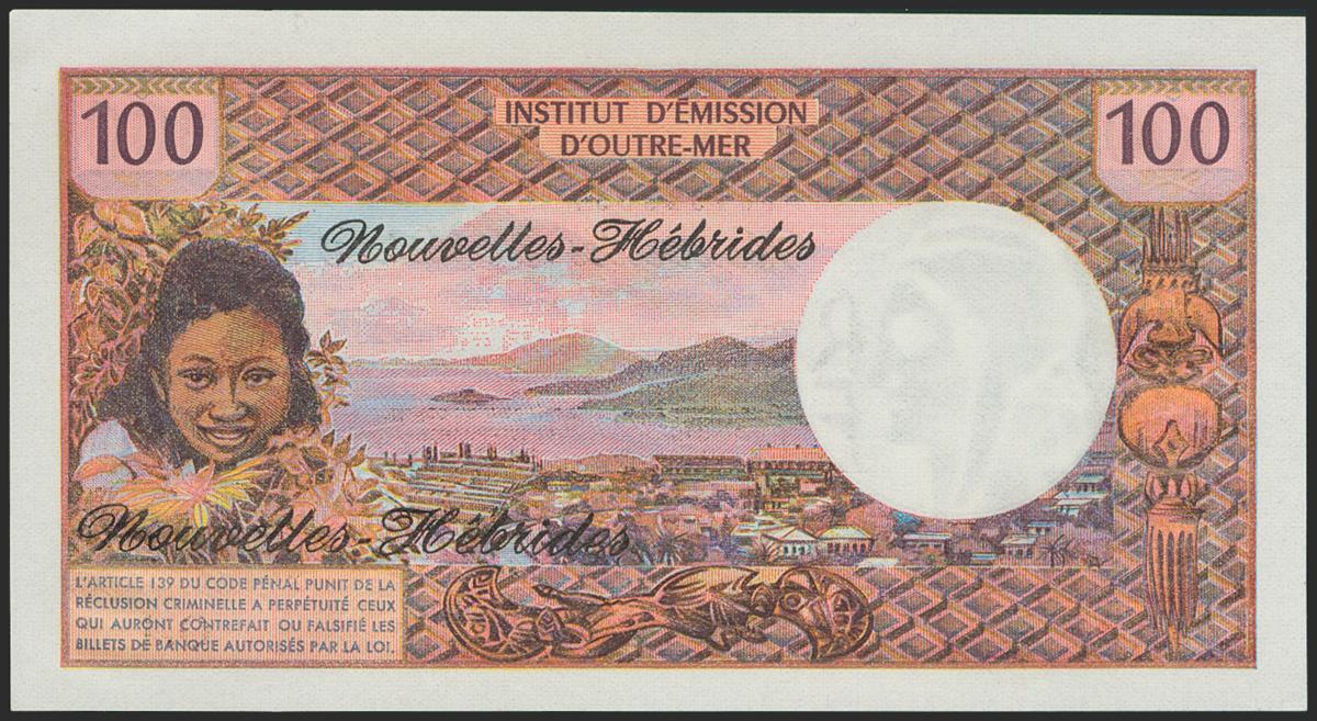 NEW HEBRIDES. 100 Francs. 1975. Signatures: Panouillot and De Lattre. (Pick: 18c). Uncirculated.