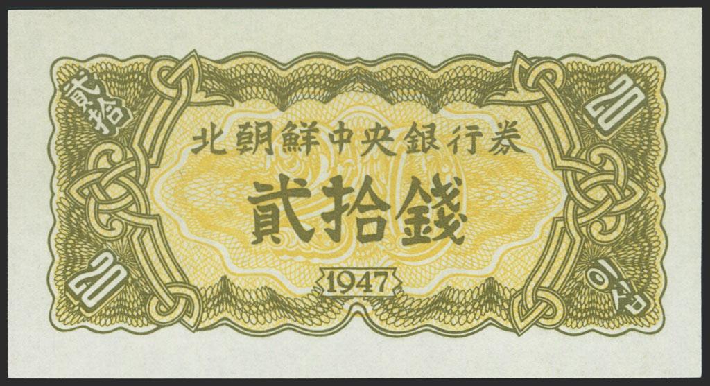 KOERA, NORTH. 20 Chon. 1947. North Korea Central Bank. (Pick: 6b). Uncirculated.
