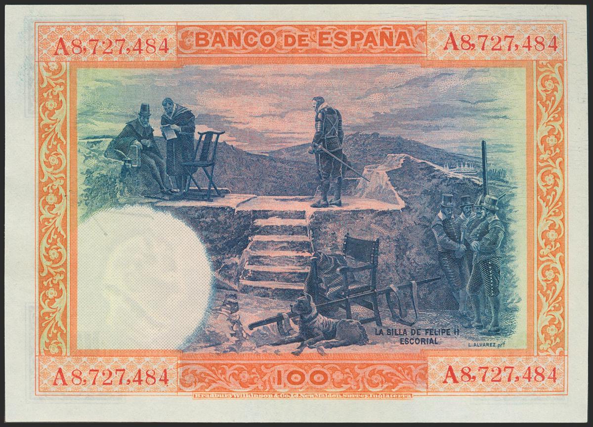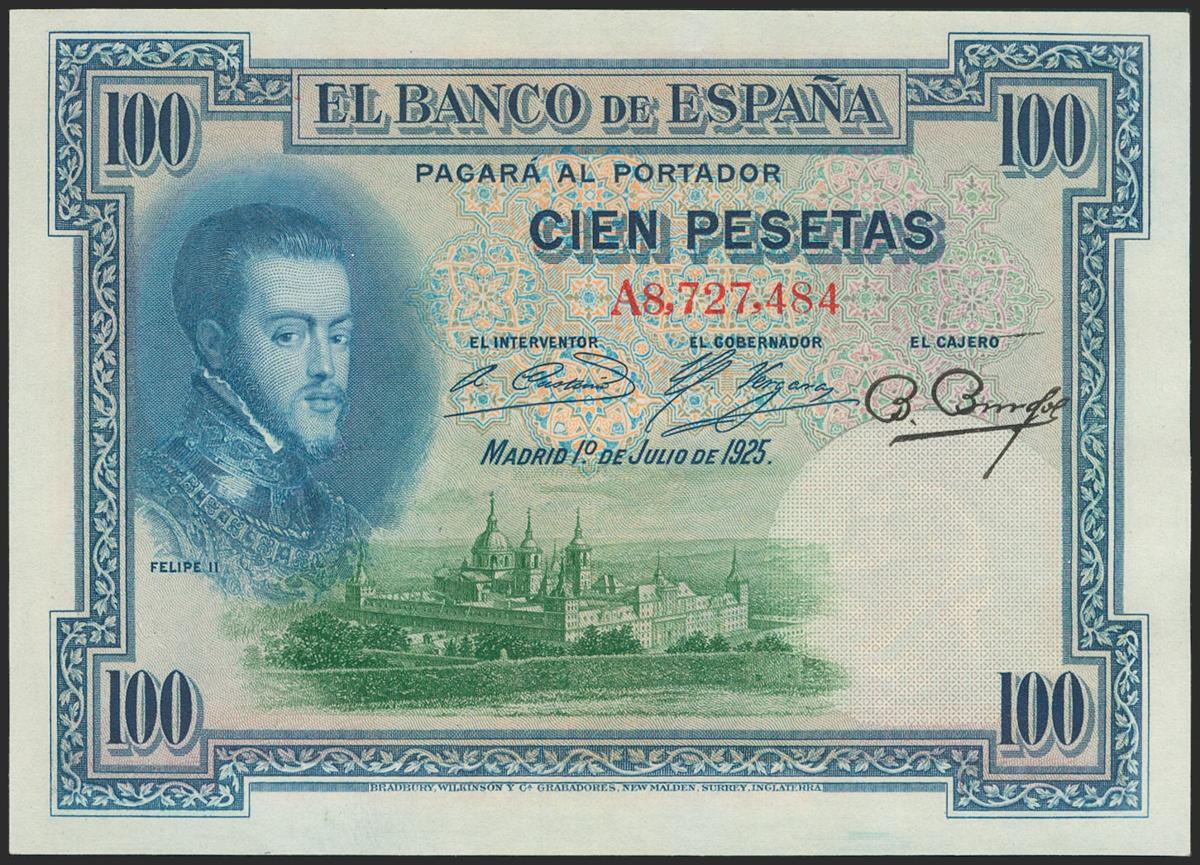 100 Pesetas. 1 de Julio de 1925. Serie A. (Edifil 2021: 323a). Conserva gran parte del apresto original. EBC+.