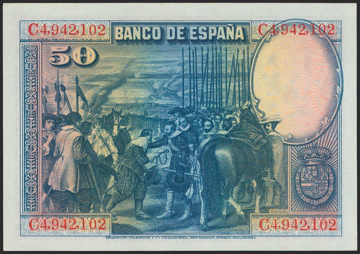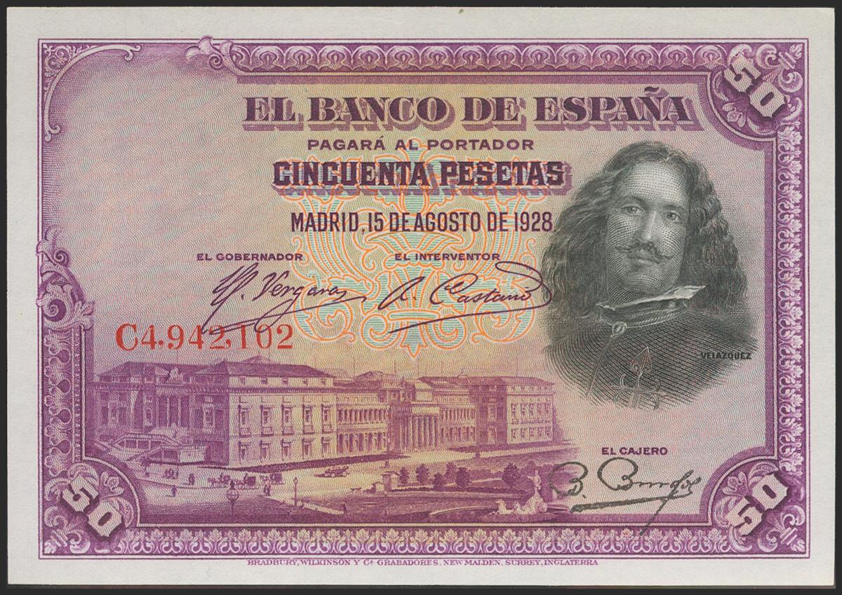50 Pesetas. 15 de Agosto de 1928. Serie C. (Edifil 2021: 354). Apresto original. SC.