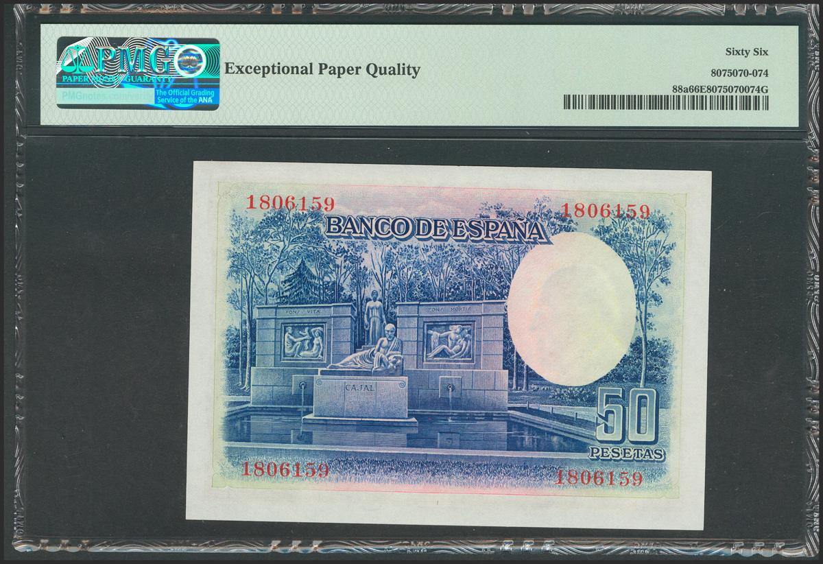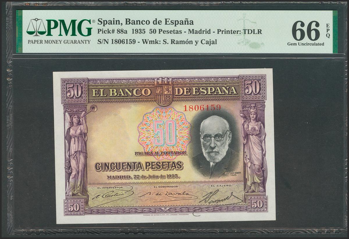 50 Pesetas. 22 de Julio de 1935. Sin serie. (Edifil 2021: 366). Apresto original. SC. Encapsulado PMG66EPQ.