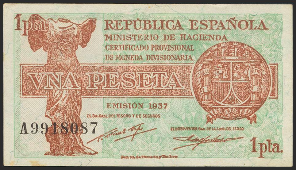 1 Peseta. 1937. Ministerio de Hacienda. Serie A. (Edifil 2021: 392). Apresto original. SC-.