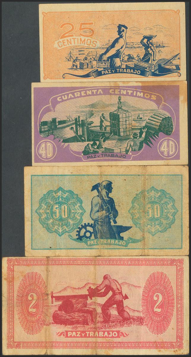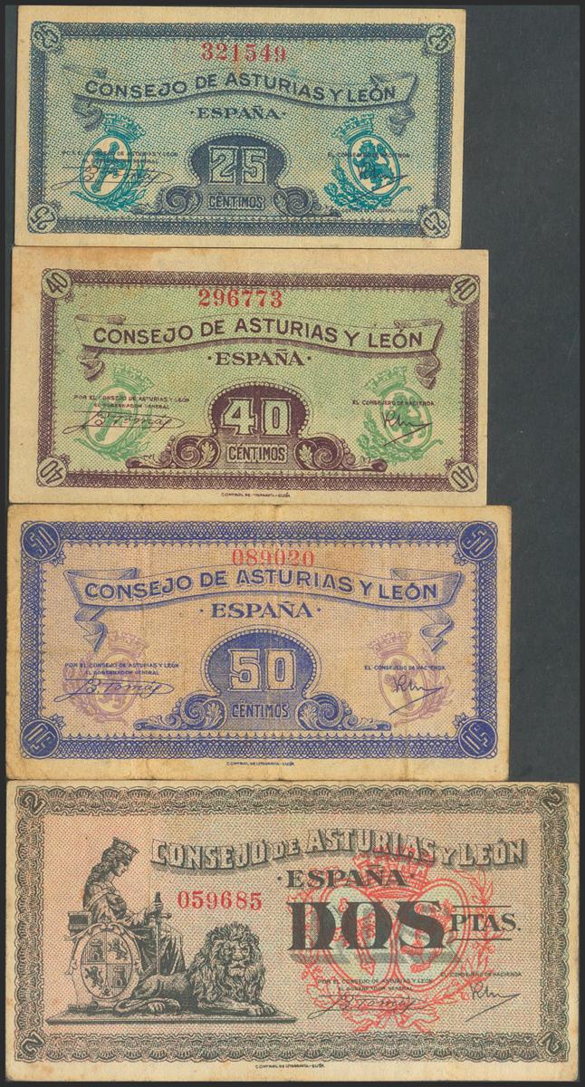 Serie completa de Asturias y León del año 1937, a falta del 1 Peseta (Edifil 2021: 394/98). EBC-/MBC-(el 50 Céntimos MBC-).