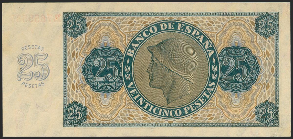 25 Pesetas. 21 de Noviembre de 1936. Serie R. (Edifil 2021: 419a). Apresto original. SC-.