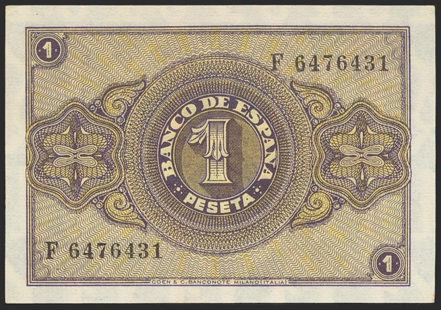 1 Peseta. 12 de Octubre de 1937. Serie F, última serie emitida. (Edifil 2021: 425a). Apresto original. SC.