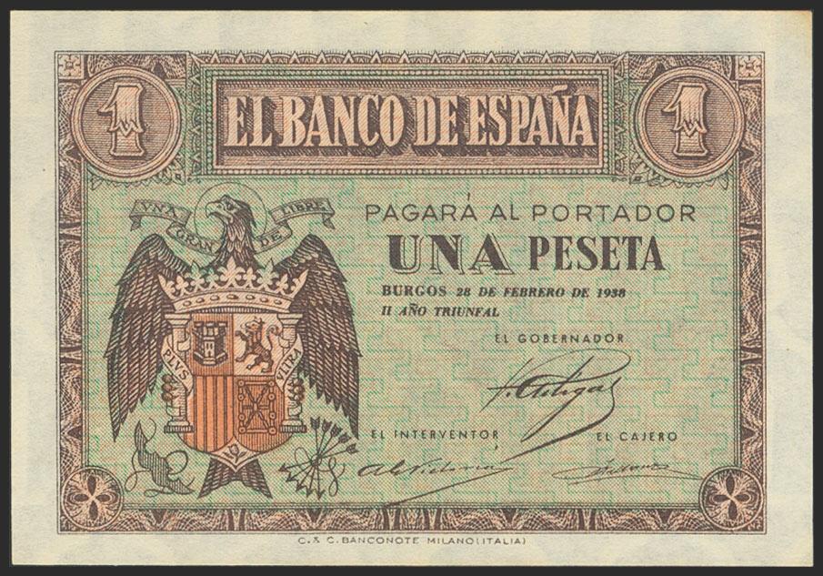 1 Peseta. 28 de Febrero de 1938. Serie F. (Edifil 2021: 427a). Conserva todo su apresto original. SC-.