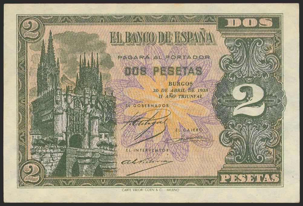 2 Pesetas. 30 de Abril de 1938. Serie G. (Edifil 2021: 429a). Conserva gran parte del apresto original. EBC+.