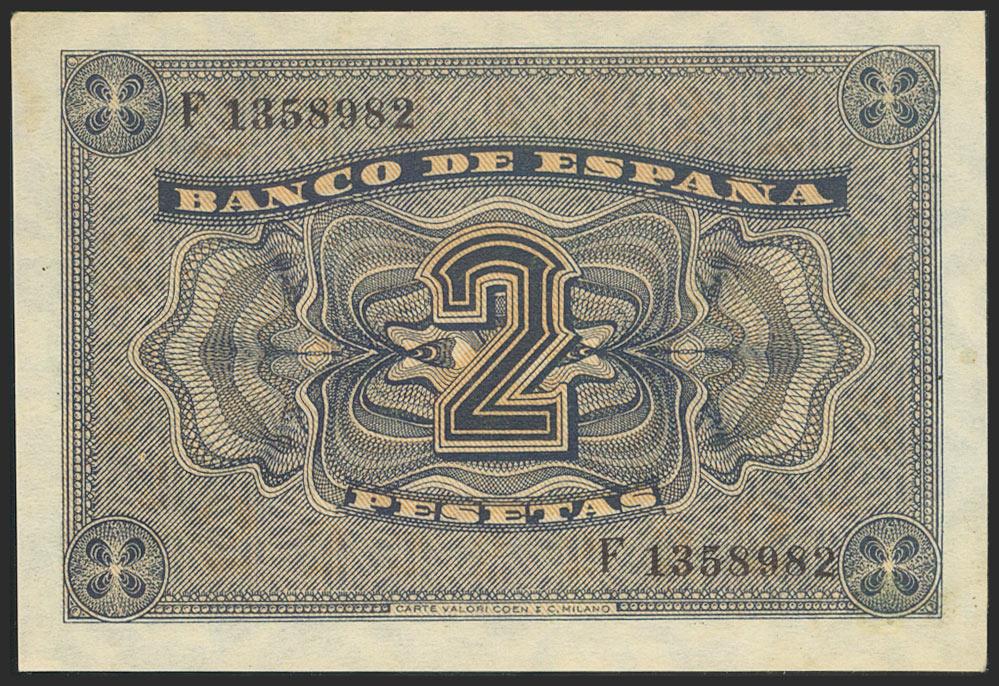 2 Pesetas. 30 de Abril de 1938. Serie F. (Edifil 2021: 429a). Apresto original. SC-.