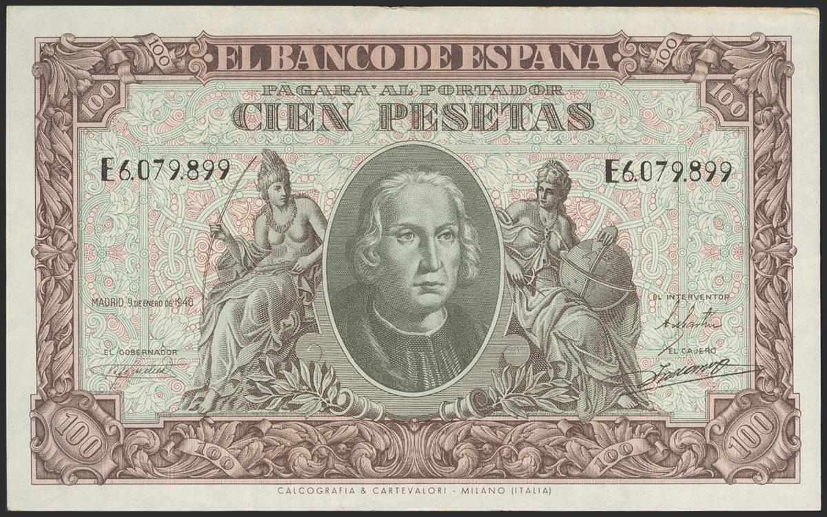 100 Pesetas. 9 de Enero de 1940. Serie E. (Edifil 2021: 438a). Conserva gran parte del apresto original. EBC+.