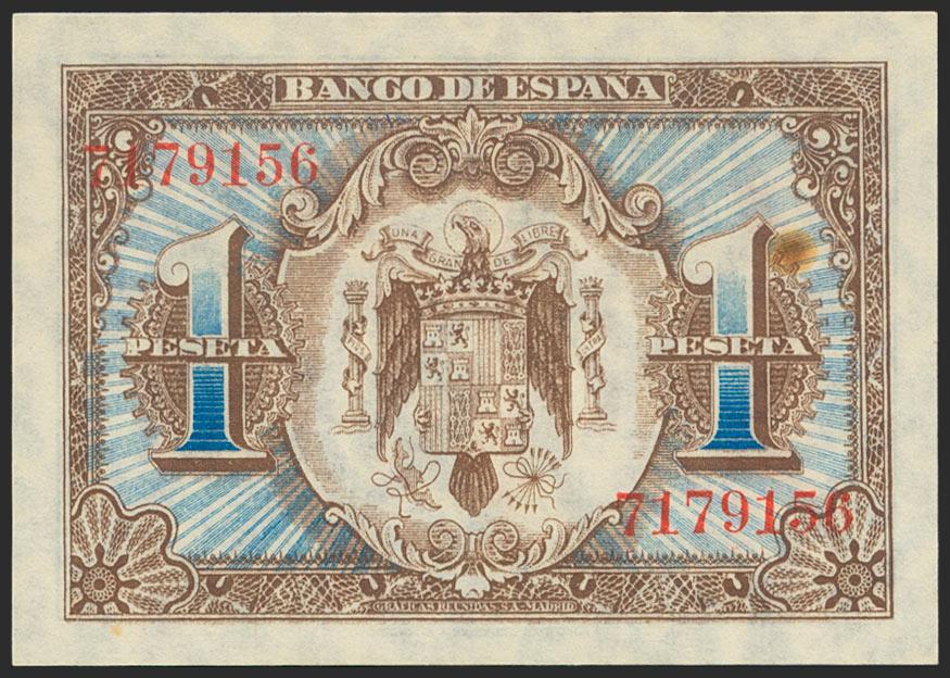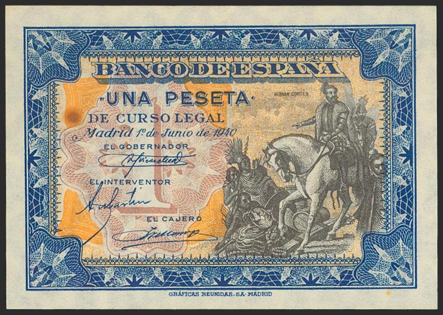 1 Peseta. 1 de Junio de 1940. Sin serie. (Edifil 2021: 441). Conserva gran parte del apresto original y punto de óxido. EBC+.