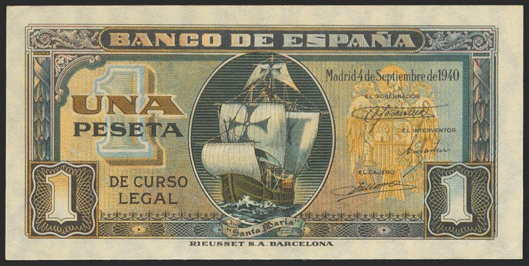 1 Peseta. 4 de Septiembre de 1940. Serie E. (Edifil 2021: 442a). Apresto original. SC.