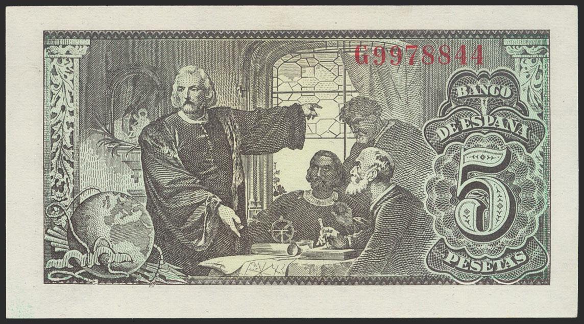 5 Pesetas. 13 de Febrero de 1943. Serie G. (Edifil 2021: 446a). Conserva gran parte del apresto original. EBC+.
